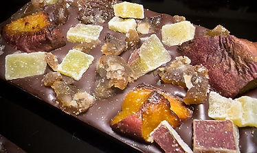 (ハイカカオ72%ノワールでカバーリング)鮮やかで香り高く、柔らかい食感が特徴。お届けまでチョココーティングしてから冷蔵庫で2〜3週間、コンテナーで熟成してから箱詰め致します。